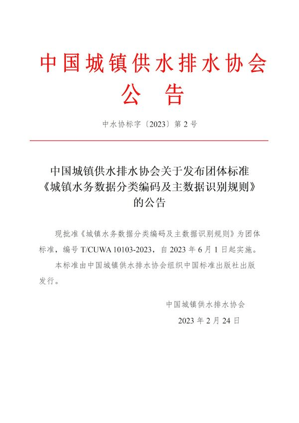 新利体育平台怎么样啊关于发布团体标准 《城镇水务数据分类编码及主数据识别规则》 的公告